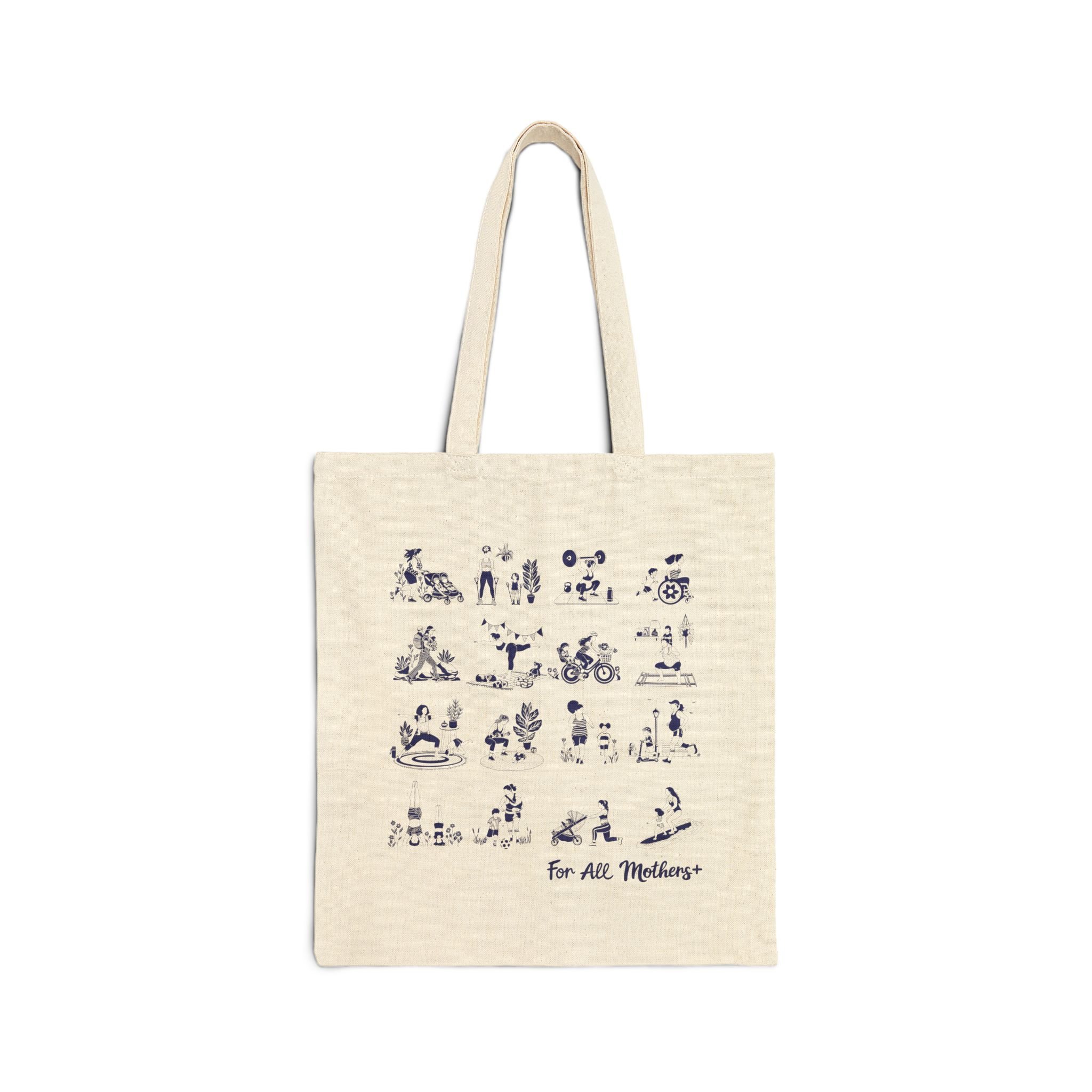 This 100% cotton bag is 15" x 16"– perfect for everyday wear. The bag features 20" handles (made from the same canvas), making it easy to carry even with a week's worth of shopping.